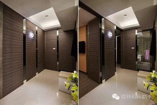装修招标小妹点评:玄关入内,弧形柜体顺势导引动线也将立面上电表箱收于无形。