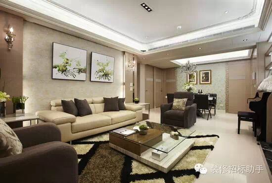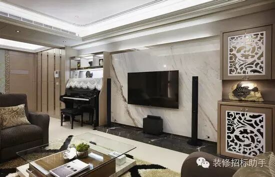 装修招标小妹点评:在客厅公领域上,连续完整性是设计师所期待的视感,因此电视主墙面藉由镜面线条,流畅规置出钢琴所须摆放空间。